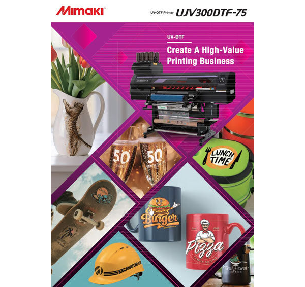 The Mimaki UJV300DTF-75 printer is the company’s first purpose-built UV-DTF (direct-to-film) printer, designed to easily produce vibrant, durable transfers that can be placed over curved or uneven surfaces using a dedicated film system. With stable media handling, next-generation UV inks, and user-friendly operation, it opens up new possibilities for customised goods production.